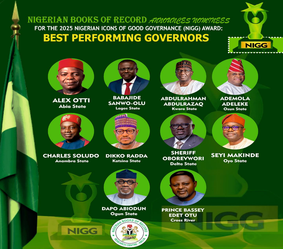 Nigerian Books of Record has announced the nominees for the 2025 Nigerian Icons of Good Governance (NIGG) Award: Best Performing Governors. In a landmark announcement that underscores the power of exemplary leadership, the Nigerian Books of Record (NBR) unveiled the nominees for the prestigious 2025 Nigerian Icons of Good Governance (NIGG) Award on July 14, 2025, in Abuja.